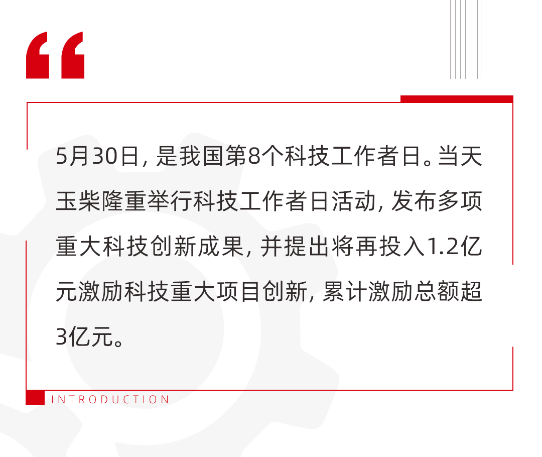 玉柴機器產品再上新!科技創新獎勵將超3億元