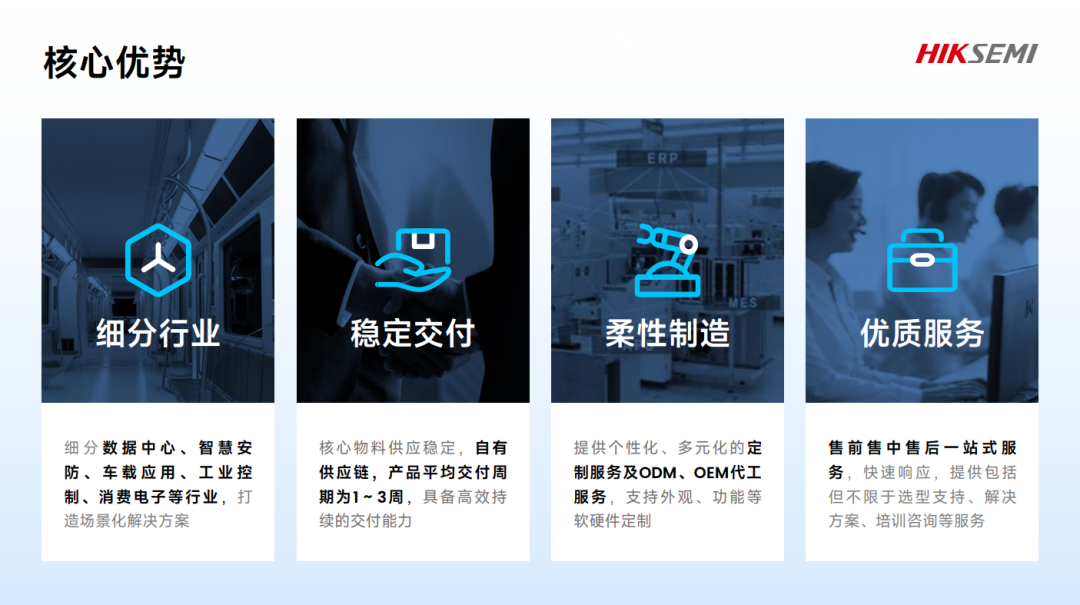 杭州海康存儲(chǔ)科技有限公司(以下簡(jiǎn)稱海康存儲(chǔ))成立于2017年,專注于打造安全可靠的存儲(chǔ)整體解決方案,業(yè)務(wù)聚焦數(shù)據(jù)中心、工業(yè)控制、車載應(yīng)用、智慧安防、消費(fèi)電子、PC裝機(jī)等應(yīng)用場(chǎng)景。目前,已擁有嵌入式存儲(chǔ)、固態(tài)硬盤、存儲(chǔ)卡、內(nèi)存模組、私有網(wǎng)盤、移動(dòng)固態(tài)硬盤、U盤及周邊等產(chǎn)品線,通過豐富的產(chǎn)品布局和專業(yè)的服務(wù)支持,持續(xù)為用戶和客戶創(chuàng)造價(jià)值。